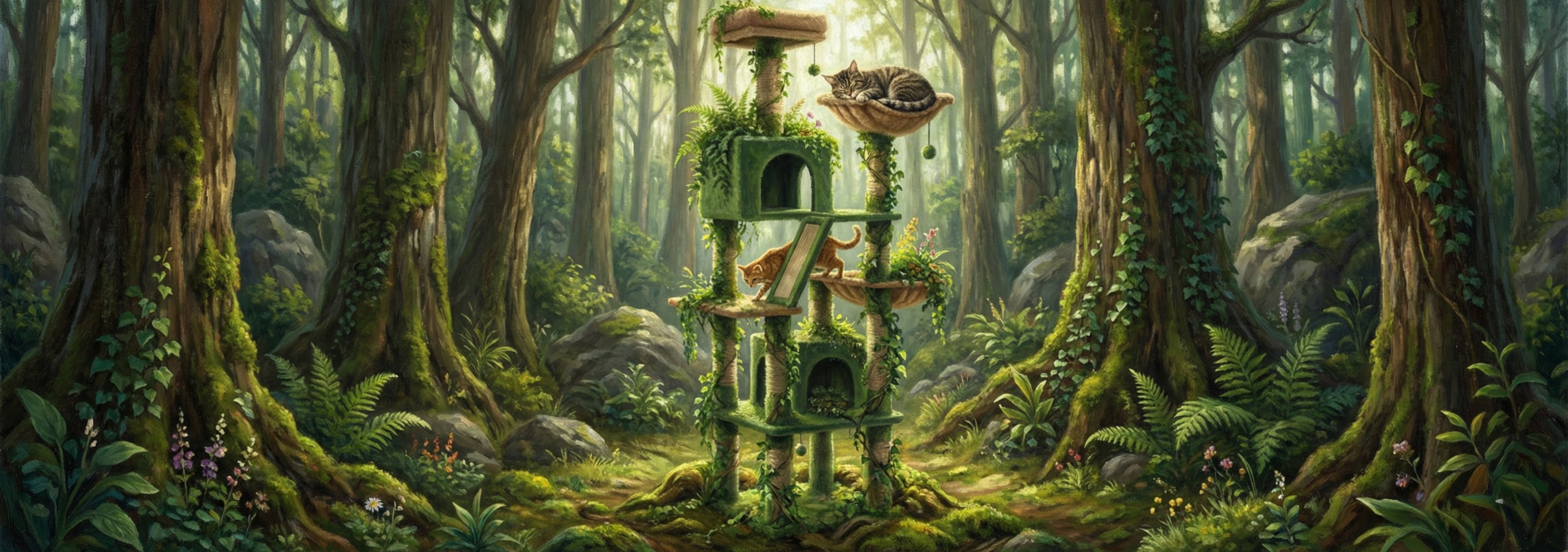 Des pompons suspendus pour éveiller ses réflexes de chasseur à la rampe d'escalade pour des courses-poursuites effrénées, chaque élément est pensé pour offrir une stimulation mentale et physique indispensable à son équilibre.